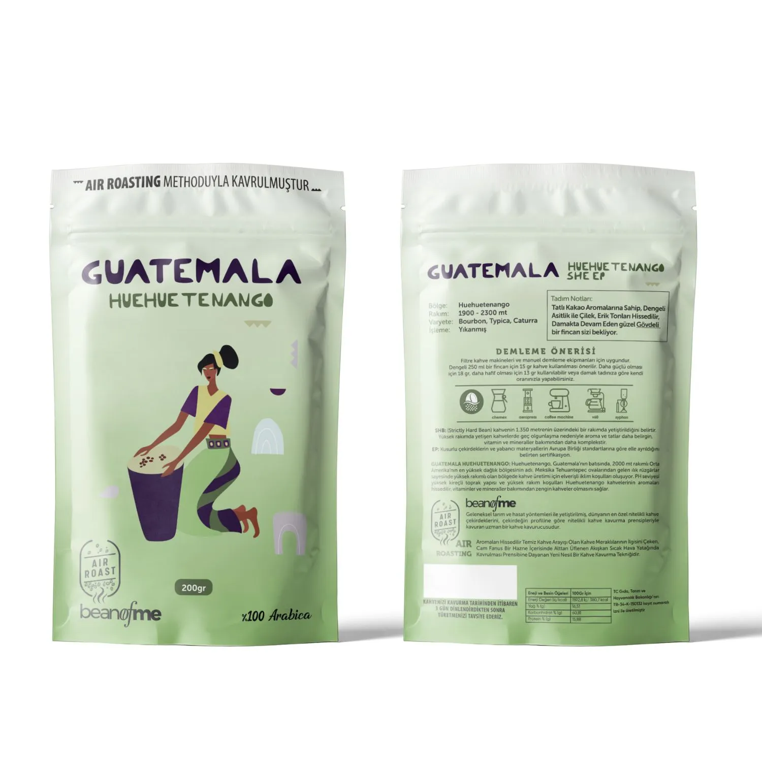 Aromaları Hissedilir Temiz Kahve Arayışı Olan Kahve Meraklılarının İlgisini Çeken, Cam Fanus Bir Hazne İçerisinde Alttan Üflenen Akışkan Sıcak Hava Yatağında Kavrulması Prensibine Dayanan Yeni Nesil Bir Kahve Kavurma Tekniğidir. Huehuetenango, Guatemala'nın batısında, 2000 mt rakımlı Orta Amerika’nın en yüksek dağlık bölgesinin adı. Meksika Tehuantepec ovalarından gelen ılık rüzgârlar sayesinde yüksek rakımlı olan bölgede kahve üretimi için elverişli iklim koşulları oluşuyor. PH seviyesi yüksek kireçli toprak yapısı ve yüksek rakım koşulları Huehuetenango kahvelerinin aromaları hissedilir, vitaminler ve mineraller bakımından zengin kahveler olmasını sağlar.SHB(Strictly Hard Bean)