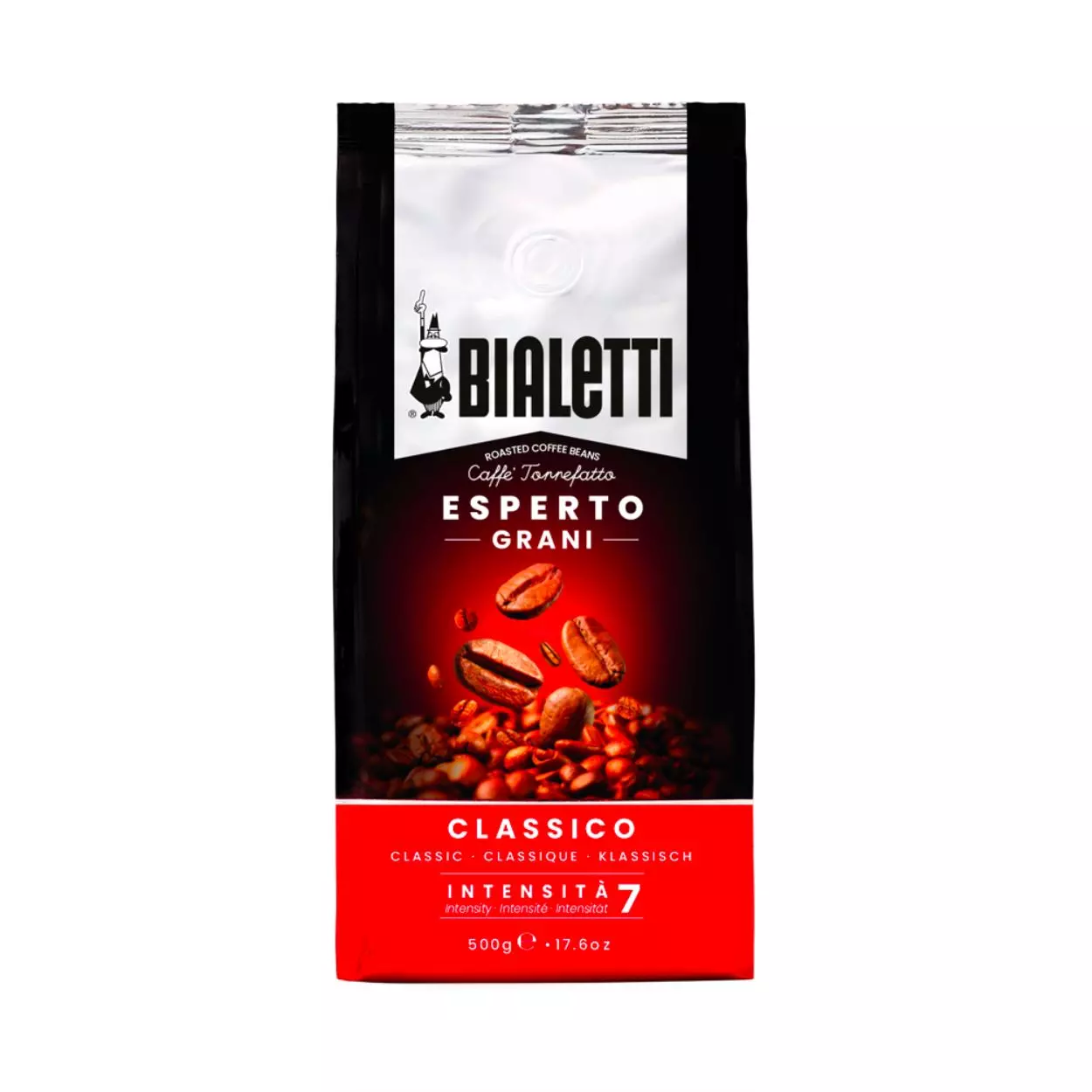 Bialetti Esperto Grani Classico, orta kavrulmuş, yumuşak, aromatik harmana sahip ve yavaş orta kavurma ile zenginleştirilmiş tatlı bir çiçek ve fındık aroması veren Columbia menşeli çekirdeklerle ustaca oluşturulmuş orta kavrulmuş bütün kahve çekirdekleridir. Esperto Grani Classico çekirdekleri, %50 Arabica ve %50 Robusta'dan oluşur. 7 yoğunluk seviyesine sahiptir.