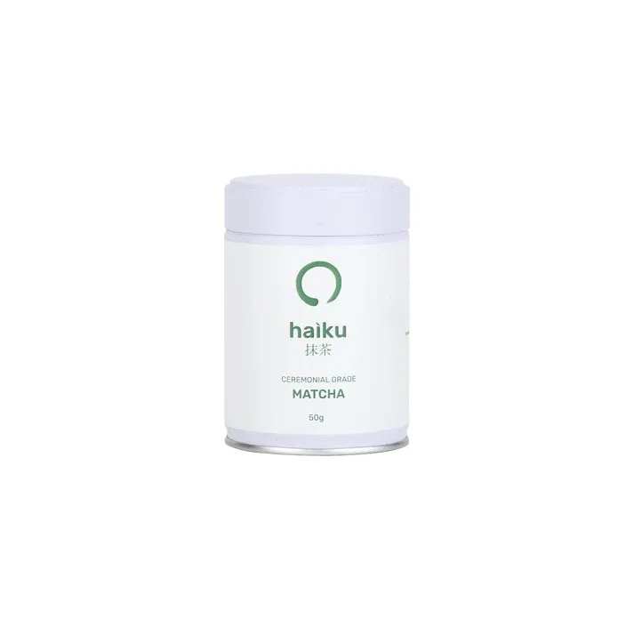 Haiku Matcha’nın 50 gramlık özel metal kutusunda sunduğumuz Ceremonial Grade serisi, sadece hasattan önceki son haftalarda özel olarak gölgelenen en taze çay yapraklarının kadim yöntemlerle hasat edilmesiyle hayat bulur. Geleneksel taş değirmenlerde sabırla öğütülen bu yapraklar, her yudumda size modern bir ritüel sunar. Neden Bu Seriyi Seçmelisiniz? İmza Renk ve Doku: Doğanın en canlı yeşilini yansıtan rengi ve damağı nazikçe kaplayan yoğun kremsi dokusuyla fark yaratır. Kusursuz İçim: Yumuşak içimi ve ağızda bıraktığı zengin, acı olmayan tadıyla en saf matcha deneyimini sunar. Özel Üretim: Gölgede yetiştirilme süreci sayesinde artan L-theanine ve klorofil miktarı, pürüzsüz bir lezzet profili sağlar.