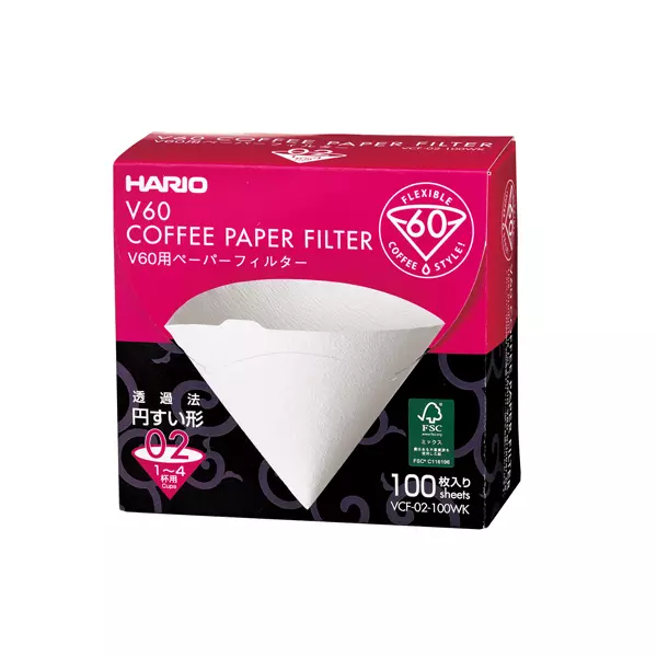 Hario V60 filtre kağıdı konik tipli demleme ekipmanlarında kullanılan filtre türü. Dripper modelleri (seramik, plastik, metal, bakır), decanter ve ice coffee maker ile filtre kahve demlemek için kullanılması gereken kağıt filtre çeşidi bu tür. Hario tarafından tasarlanan ürün Japonya’da üretiliyor. Hario V60 02 filtre kağıdı, Dripper ile ideal filtre kahveyi hazırlamak için uygun kalınlık ve geçirgenliğe sahip olacak şekilde tasarlandı. Hario V60 filtre kağıdı tek kullanımlık ve her demleme sonrası yenisinin kullanılması gerekiyor.