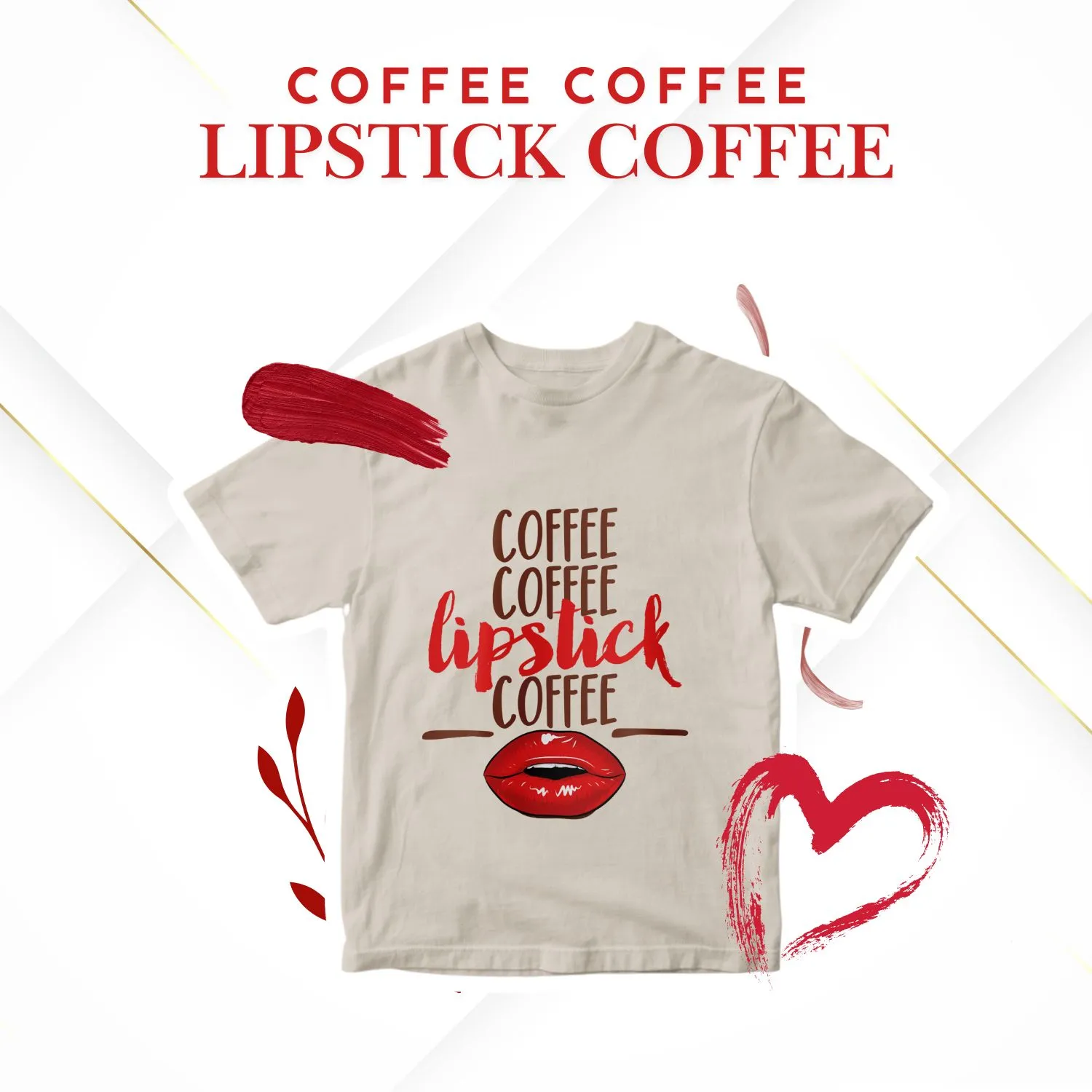 Coffee Lipstick Baskılı TişörtSabah rutinin basit: Kahve, kahve, ruj, kahve!