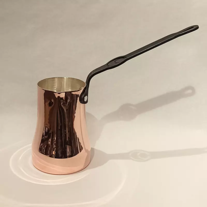 Kahvemiz için bugüne kadar üretilen en ideal cezveler, odun ateşinde, közde, kumda, gaz ocağında ve elektrik ocağında kullanıma uygun taban yapısı, karbon çelik sap, kalay iç kaplama bakır cezve.