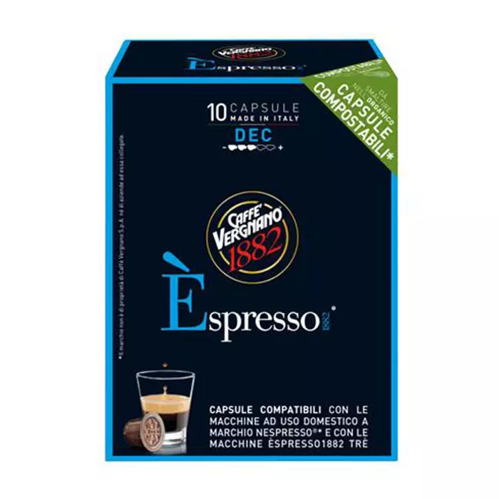 Lezzetli ve aroma dolu Robusta çekirdekleri ile dengelenmiş en iyi orta ve Güney Amerika Arabikalarından oluşan bu harman daha sonra uygun olarak kafeinden arındırılır ve yavaş yavaş kavrulur. Kreması dengeli yoğun ve kahverengi tonlarındadır. Kapsüllerimiz artık çok daha çevreci "Kompostlanabilir”, yani organik atıklarınızla aynı çöpe attığınızda toprakla karışıp doğal gübre yerine geçebilmektedir. Kapsüllerimiz Èspresso®1882 TRÈ kahve makinelerine ve Nespresso®* - Citiz, Pixie, Essenza, Lattissima, U ve Maestria kapsül makinelerine uyumludur. *Ticari marka Caffé Vergnano S.p.A. veya bağlı diğer şirketlerin malı değildir.